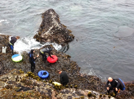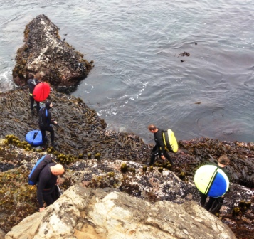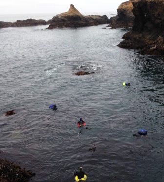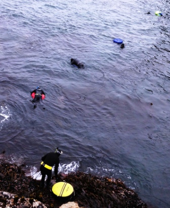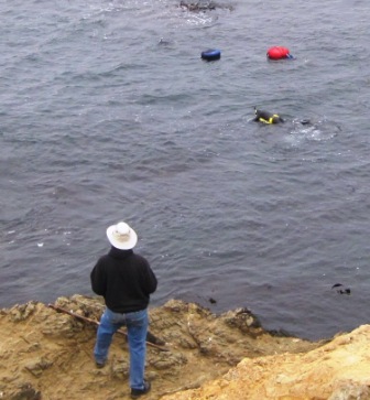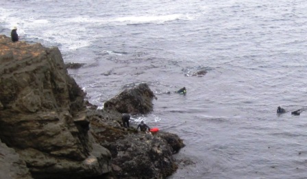 We got up early the next day to see Jeff and his diving companions pull trophy sized abalone along the coast. After clicking a picture of the divers, we hiked through fields of wild flowers to the edge of the cliffs to see all the action.