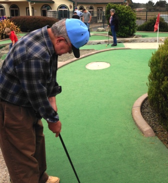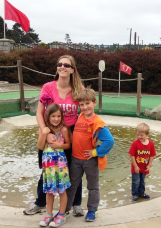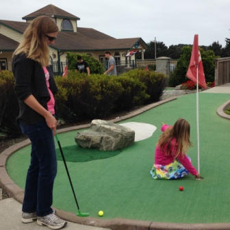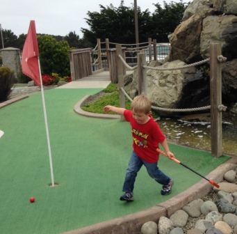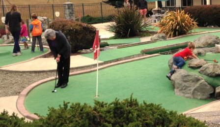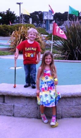 Now we were counting on an energy boost from those S'mores to get us back to the Emerald Dolphin Inn and to play some miniature golf with Ellen, Austin, Ashley, and Alex. Alex came running as we arrived and kept on running the rest of the day.