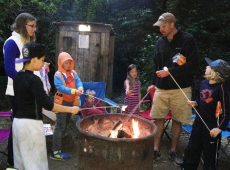 This was a Father's Day weekend trip to Fort Bragg where we joined Bev and Pat, and Ellen and her kids, and Jeff and his family, and his diving buddies. The first stop was the Van Damme State Park where Jeff, Shane, Mikayla, and Tori were camping. They shared their S'mores with us to provide energy for the weekend.