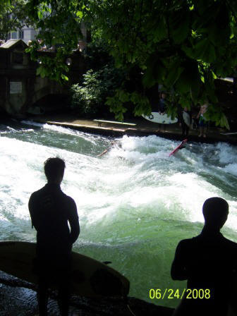 Surfing on the river in the middle of Englisher Gardens Beautiful Lake near Neuschwanstein Castle
