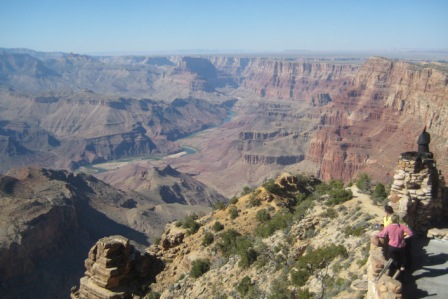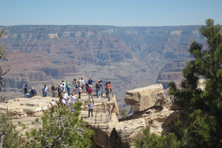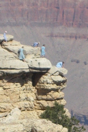 It's a long way to the bottom (4,000 feet). Some crazy girls in blue dresses hopped down the rocks close to the edge. No guard rails nearby!