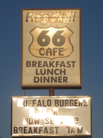 Then we took off down Route 66 for our motel in Kingman...a long ride on an endless road with a few signs for distraction:
