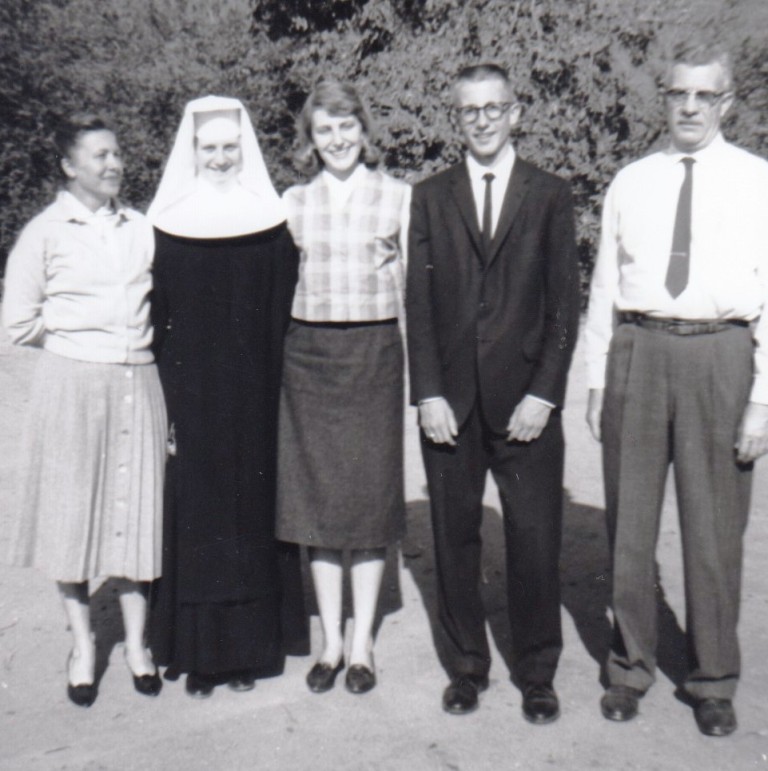 With Mom, Sister Elizabeth (Zoe), Joyce, and Dad; With Sister Elizabeth and Sister Cecilia Joseph from Fresno