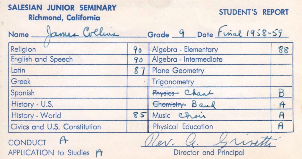 Sometime in June, the Prefect of Studies, Fr. Murphy, came to the study hall. He called each seminarian by name to stand up as he read our grades aloud to the entire group. Sometimes he dramatized a high or low grade. I was proud of my grades, but I could see more demanding classes to come on the standard report card. Latin caught up with me later when I repeated Latin III while also taking Latin IV. I was sad for those who struggled especially with Latin. Many of my classmates left the seminary because of the academics, homesickness, the rules and discipline, among other things. I recall some friends sneaking from the dormitory to the attic to study after midnight to catch up. Many hours of quiet study hall time each day were not enough. Empty beds in the dormitory signaled that someone had left. There were no good-byes.