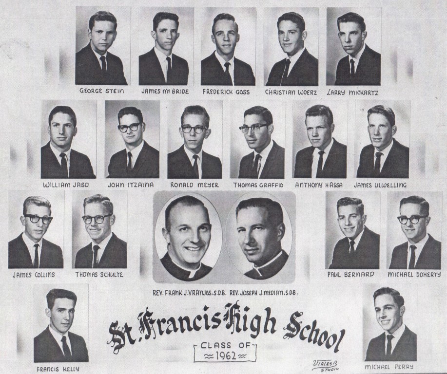 Before leaving for the east coast, the Class of 1962 picture was placed in the main hallway for everyone to see. We were 17 of the original 52 who had survived the rigors of junior seminary life for four years. Two would eventually be ordained priests. There was still a long road ahead.