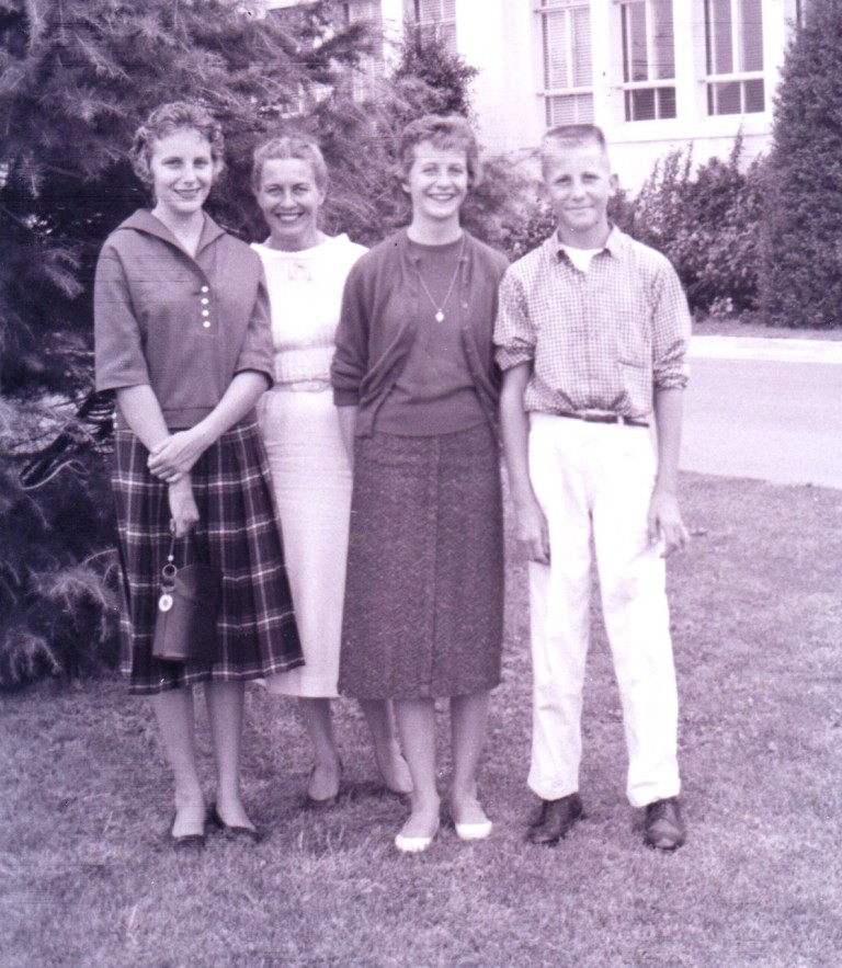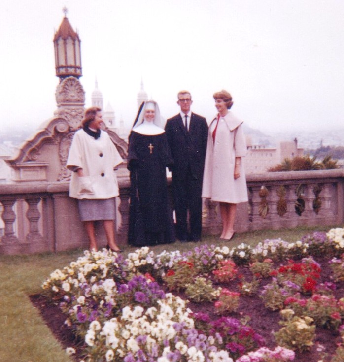 Shortly before the long train ride back east, my dad snapped some pictures of Mom, Joyce, Zoe and me at Lone Mountain where Zoe was taking summer school classes. I would return to a different San Francisco during the 'Summer of Love' in 1967 to take Library Science classes at nearby USF:
