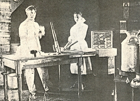 The Collins family lived a happy life in Alton for ten years. Hiram worked as a butter maker. The picture below shows him stamping butter with a co-worker. The locals recalled the excellent ice cream he made at the creamery.