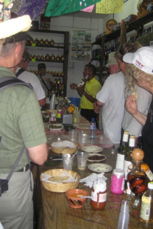 Then they tasted salsa, cheese, grasshoppers, and local liqueurs. Next was a visit to the Ave Maria Church.