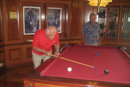 Later on, Bill and Pat tried to play pool on the ship's pool tables which moved with the tides.