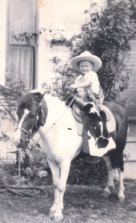 By 1941 they had moved to El Monte homesteading a few acres near the sandy river bottoms nearby. The Second World War brought some relief from the Depression but life in El Monte was still pretty basic. Grandpa had a few horses, chickens, and lots of rabbits. He had transitioned from life as a butcher and grocery store owner to a gardener for those who could afford one. He loved plants and maintained a large garden and a jungle of plants to surround his land. Uncle Jim grew up helping on the ranch and tagging along with his Dad on the gardening routes whenever he could. It looks like he also had time to play cowboy with his friend: