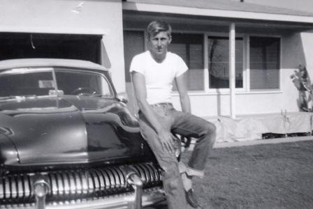 Later in the Fifties his first marriage had failed, so he moved back to El Monte to help my Grandpa with his gardening business. He saved his money for his toys: classic cars (Chevrolets, Corvettes) and speed boats. He took my sisters and me on his T-Bird powered speed boat on Newport Beach. Gunning the engine, he dared other boats to race him. Another speed boat pulled along side and gunned their engine ready to race. He kept even with them from one end of the inlet to some buoys on the other side. When they made a wide turn, he came almost to a full stop and floored the accelerator as he turned the wheel. The boat almost jumped out of the water nearly throwing us into the ocean. As the boat splashed back down, he had made a perfect 180 degree turn. Then he gunned the engine, leaving the other speed boat far behind. It never caught up and he laughed all the way back to the launch site.