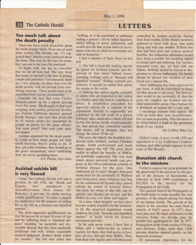 Meanwhile, I was sending trying to make sense of an assisted suicide bill: