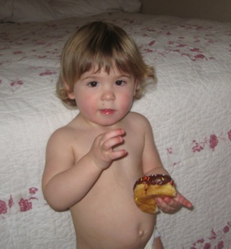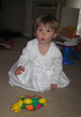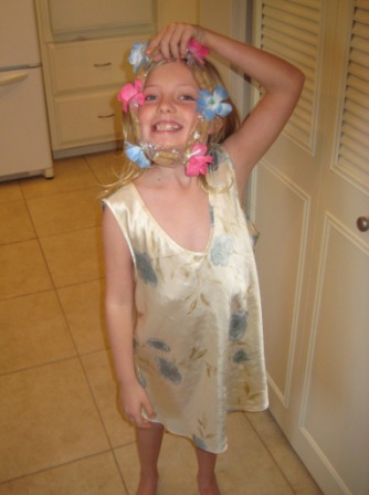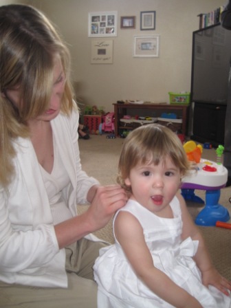 …where we found Ashley enjoying one of the donuts that Rachel brought then Ellen dressing her for the occasion.
