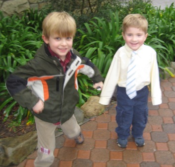Austin wasn’t thrilled with wearing a tie until cousin Carson showed up.