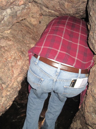 Barbara and I squeezed our way through the cave until the water became too deep...