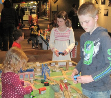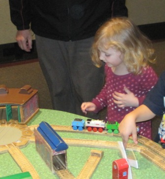 Helena took over as engineer then she and Wyatt helped Sienna with the toy trains.