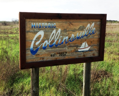 The rolling hills were a emerald green dotted with sheep feeding off tufts of long grass. Collinsville was founded by C. J. Collins (no relation) around 1857. It was named Newport for a few years as an investor tried to lure people from the East Coast to a 'big railroad town.' Passenger trains from Sacramento to San Francisco were pulled across the Delta by barge for a several years until the bridges were built in neighboring towns. Once the hopes for the railroad town died, the town was renamed Collinsville. Now, a lonely road ends at the Delta. A Fourth of July fire in 2014 destroyed half the town. A few larger homes survived near the edge of the Delta.