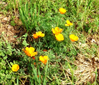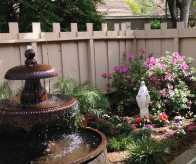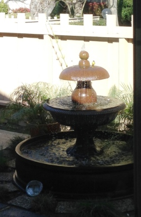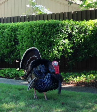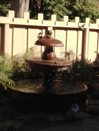 ... and took pictures of birds playing in the fountain and the new flowers and a local turkey...