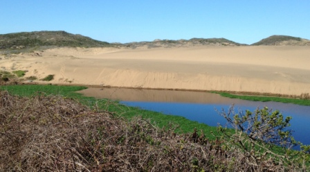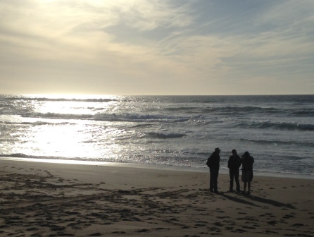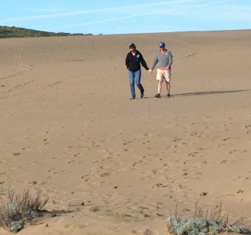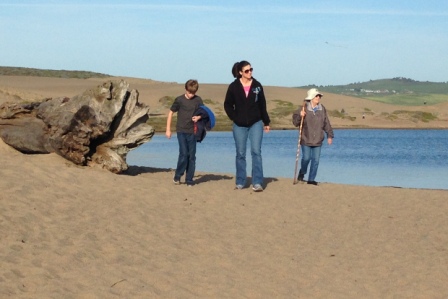 Barbara and I drove to Point Reyes for our first hike of 2016. The long drive rewarded us with a short, flat hike at Abbotts Lagoon which offered a variety of scenery: cow pastures, lagoons, sand dunes, beach; cows, deer, sea birds, even a blue heron. We were so impressed that we invited the Neiber family to join us on a return trip two weeks later.
