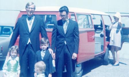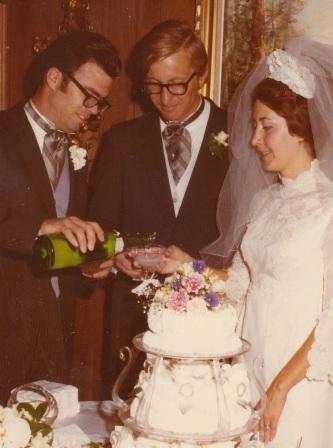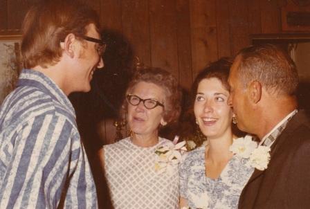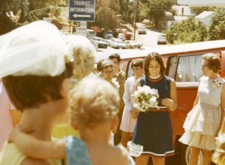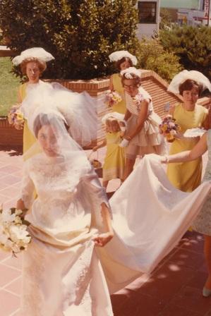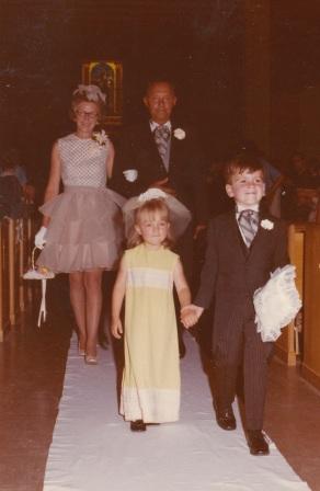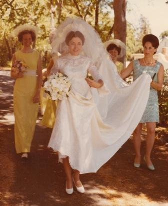 Barbara's Mom, Ruth, helped just before the wedding procession while the groomsmen and bridesmaids gathered. Barbara's brother-in-law, Mike McKenzie, donated his services as photographer and left us the treasure of an extensive wedding photo album.