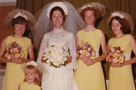 Bridesmaids: Bev McKenzie (Maid of Honor), [Barbara LaPlante, Bride], Zoe Collins, Colette Steffan, Monica McKenzie (Flower Girl):