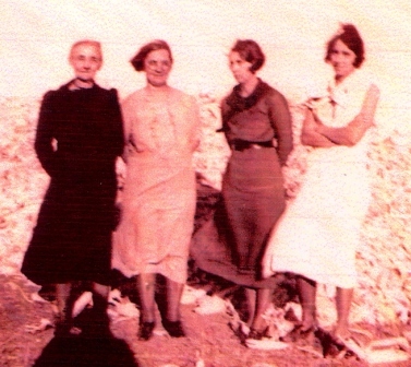 Aunt Jennie (Collin) Lupkes with daughters Lizzie (Lupkes) Stevens, Grace (Lupkes) Bishop, and Jennie (Lupkes) Judy in Burns, Wyoming 1936. Most likely these were Hiram's cousins in the picture. I'm not sure of the order. The other cousin who may have helped was Bena (Lupkes) Burma. They helped Hiram in his final days in 1935 and 1936.