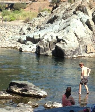 Maggie and Carson joined us for our last weekend drive in August to the confluence of the American River near Auburn. Carson appeared to be walking on the water just before he waded unto the river bed.