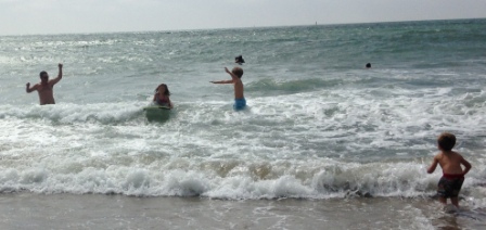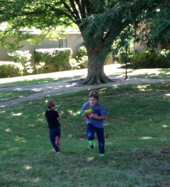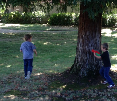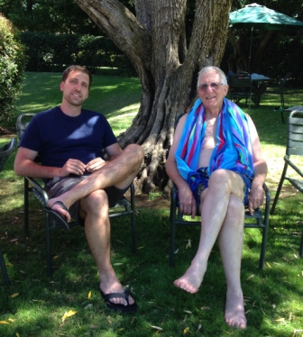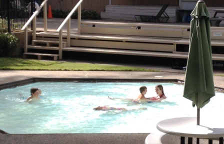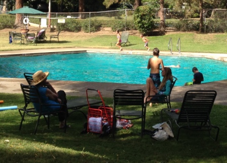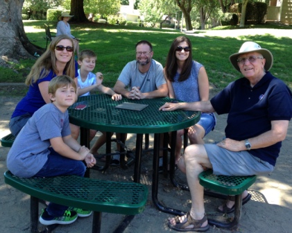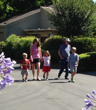 We were glad to be back home for July when Ellen, Austin, Ashley, and Alex drove from Ventura to Sacramento to visit for a few days. We spent time hiking around Campus Commons and tracked down the elusive turkeys. While Austin and Alex played commando games, Ashley helped Grandma make a peach galette. Later on, Maggie, Jason and Carson joined the fun. Then Joe joined us at the pool to escape the July heat.