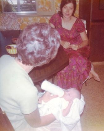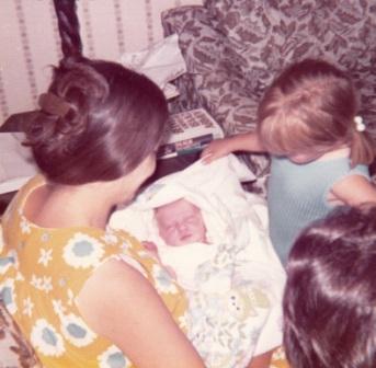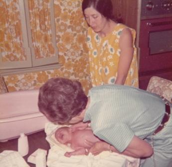 Back home, we were clueless about what to do with a baby although we had read a few books. Barbara's mom, Ruth, shared her experience from having four babies. Within a few days, we knew the basics. Barbara's sister, Colette, helped rock Jennifer and painted a few pictures for the nursery. Monica met her new cousin. My mom and dad visited with my sister, Zoe. Everyone wanted to hold the new baby and give advice.