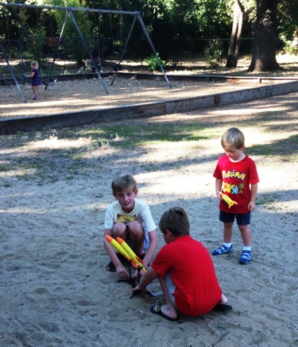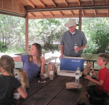 ...later we returned to daylight for some more pictures (notice who's wearing the hats), and then some lunch.