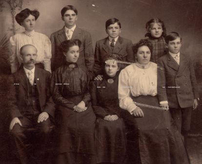 William Joshua married Katie at Great Bend, Kansas, on June 14, 1882. She was born on March 18, 1864 in Germany. Shortly after the wedding they moved to claims in Kingman County, Kansas at a place first called "Lotta" which was later known as Penalosa. In 1884 their first child, Ella, was born in a sod house. Their other children were John Francis, Susie Belle, William Joshua, Gladys Marie, Esther Pauline, and Paul Gordon.
