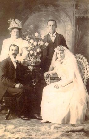 Joseph Domino LaPlant was born November 28th 1865(7?) in Pipestone Township, Michigan to Gedeon and Denise LaPlant who were from Canada and only spoke French in the home. Joseph D. had two brothers, Arch, and Delmar and two sisters, Louise and Marie. (Denise LaPlant is listed in the genealogy paper, not sure if Helen Betty left her out) When about 30 years old young Joe came to Kansas and taught school at a one room school house between Danville and Argonis. This young French bachelor attended the country dances at Danville and met a young piano teacher named Margaret Ellen Smithhisler, better known as Maggie (although she hated that name). They courted for some time and then, married in Danville at the Immaculate Conception Catholic Church on May 24, 1898.