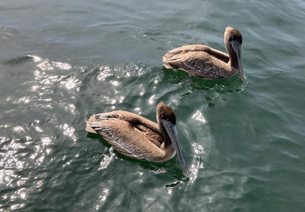 Pelicans followed us closely to snag loose bait or small fish that were thrown overboard: