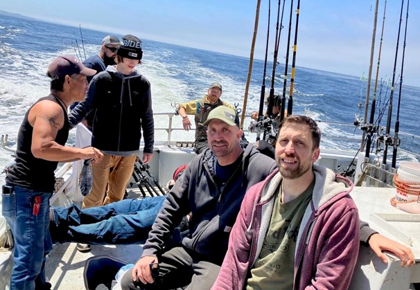After dinner, we drove to the Holiday Inn to rest up for an early Saturday fishing trip. While I slept, they had a few more drinks to kick off the get together. By sunrise, we headed for Noyo Harbor to board the Royal Sea Hawk to fish for rockfish.