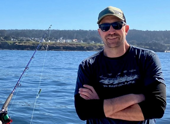 Further south, I took a picture of Jeff with Mendocino behind him: