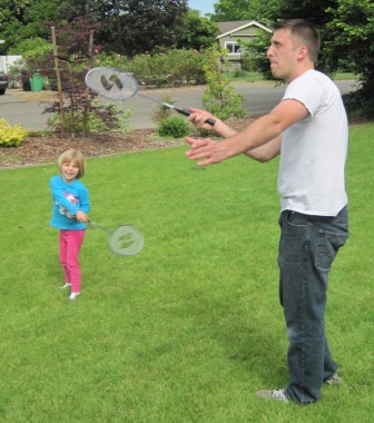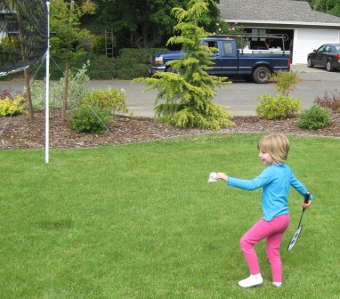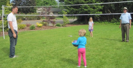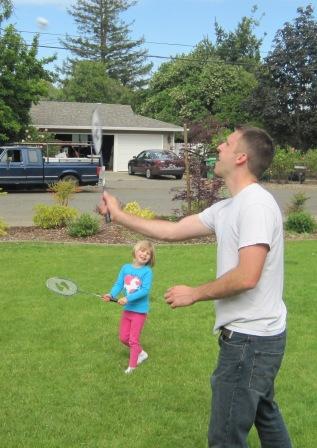 A few weeks after the First Communion it was time for a trip to Chico to celebrate birthdays with Joe, Tori and Mikayla. The day began with badminton: