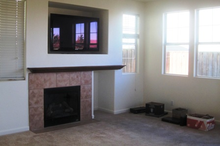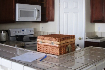 The kitchen and living room had only the bare essentials until the moving crew arrived.