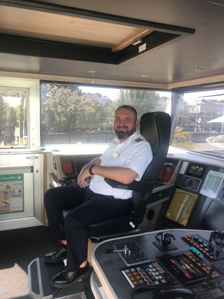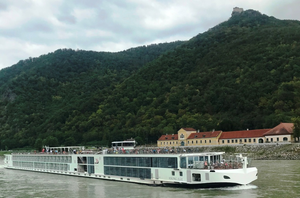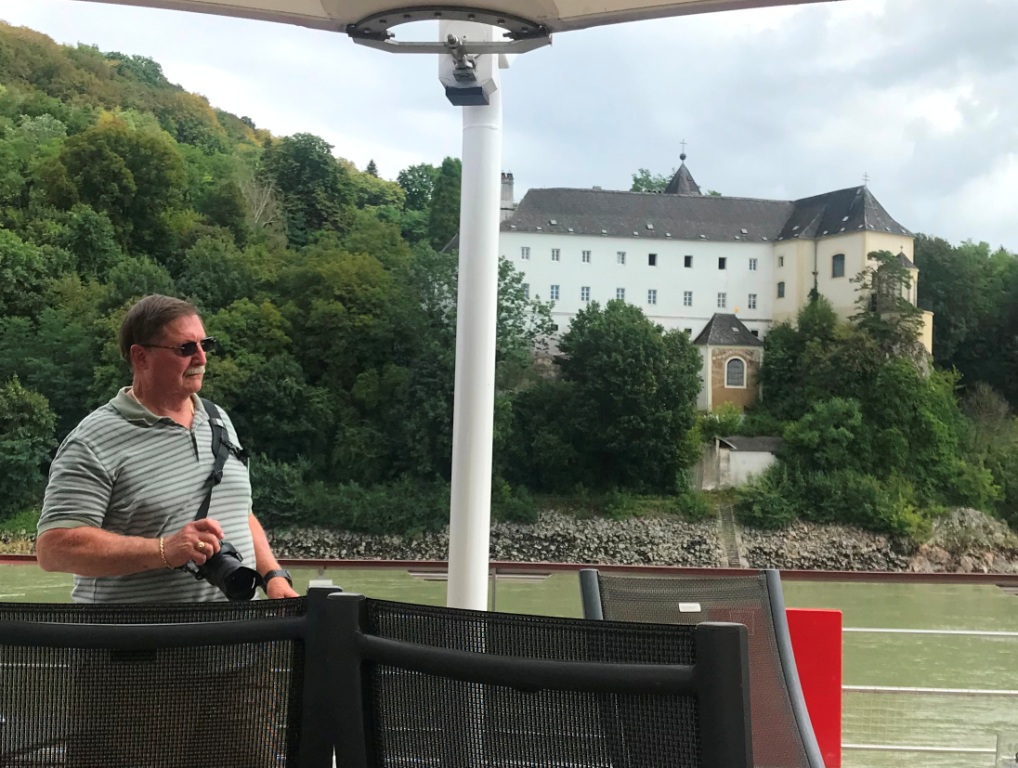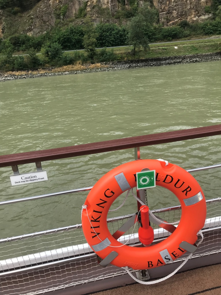 I caught another Viking ship going the opposite way. Now I could see what we looked like, including our room (two levels below the top deck), to those on shore. This was river cruising at its best.