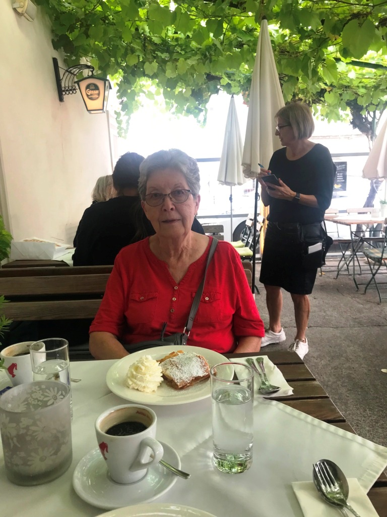 After the wine, we lost our way around town until we found a place for some apple strudel. Revived with strudel and coffee, we found our way back to the main street.