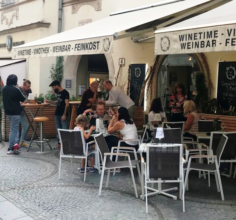We had heard about the great wines in the area, so we visited a Weinbar. I asked for two of the best wines in the area. The recommendations were perfect, a Tanzer Riesling for Barbara and a Müller Kremstal Riesling for me (similar to those pictured below):