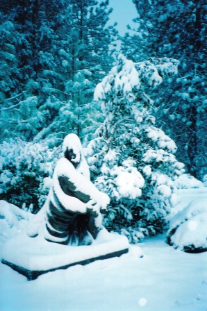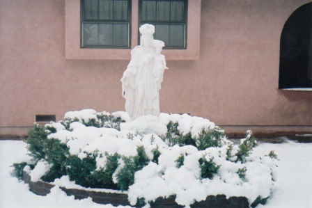 The statue of Our Lady of Mt. Carmel, our Christmas present to the Monastery, and pictures in the snow: