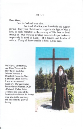 2006 Christmas Greetings from the Carmelite Community: