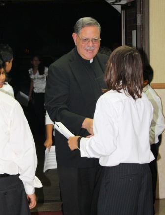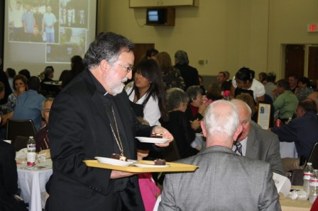 First on the agenda was to find a keynote speaker, a hall, a caterer, and a media company (sound and video). Frank and Monica were sure that Bishop Richard Garcia would be our keynote speaker. Sure enough, he agreed. I made a short drive from MVP to St. Rose where I spoke to Monsignor Kavanagh. Sure enough, the Kavanagh Hall was available (free for MVP) on November 5. A few days later my wife and I observed Hannibal’s Catering at a special dinner for Bishop Soto. They had wonderful food and service, so we decided to give them a try. Sure enough, they were available of November 5. We had also checked out the sound and video company, ATV Video, at the banquet. They put on a tremendous show, so I gave them a call. Sure enough, they were also available. All these “sure enough’s” seemed too providential to ignore even though we had so little time to put the Banquet together.