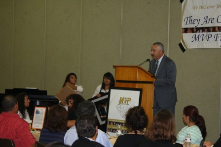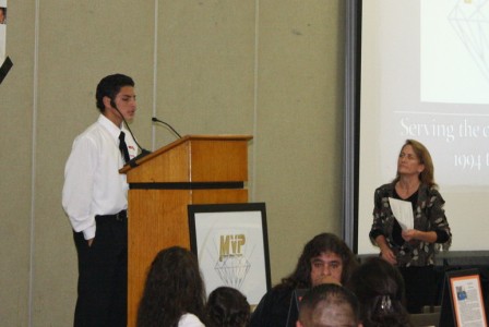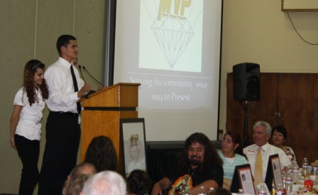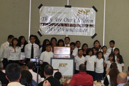 Now all we had to do was sell tickets and fill the hall. We decided to mail invitations to everyone on the mailing list and to follow up with phone calls. Five Star Services helped cut costs by covering printing and mailing costs and having Rachellee Evans design all invitations, tickets, banners, etc. from the samples I gave her. Once the mailing went out, we realized that it did not include phone numbers. I spent hours looking up whatever phone numbers I could find then shared the new list with the Board and friends of MVP. With very few responses from our mass mailing, we faced a major hurdle. It looked to me that we would be lucky to sell 100-150 tickets. But our ticket sellers were not deterred. Thomas Borge promised to move 70 tickets. Then Rico Rivera committed to sell 20-30. Steve and Fran took the challenge to sell 20. Barbara and I knew we could sell 20-30. Sara Wildermuth sold a bunch to friends in Elk Grove. John Platt decided to pay for the Christian Brothers MVP students’ dinners. Marty Haley sponsored a table. Then Frank and Monica, Caroline Samson, Elaine Putney, Joyce Heintz, and Becky Landeros sprung into action. Miraculously, by Banquet time we had sold nearly 230 tickets.