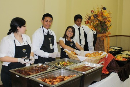 Still, we needed someone to take care of decorations and to supervise our Christian Brothers servers. Martha Herrera came to the rescue. With a very small budget she put together a crew to cut and sew cloth tablecloths and napkins and to make napkin holders. She found someone to donate dishes and silverware. She worked with Laura to find pictures of students to serve as centerpieces. By Banquet time she had everything prepared.