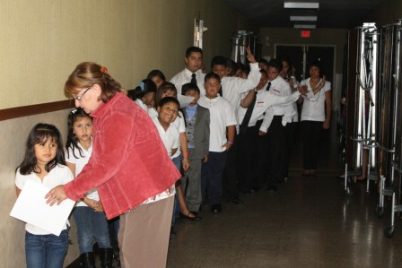 Caroline gathered the younger MVP students in a classroom preparing them for their choir performance.