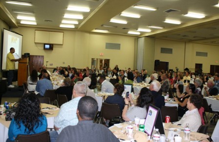 Bob Dunning introduced me to give the opening invocation. Just as I finished, Bishop Soto arrived and mixed with out guests. Soon after, Bishop Garcia arrived. Martha and her crew served the Bishops’ table while our guests lined up for the buffet. Becky Landeros and Martha’s crew worked ceaselessly behind the scenes in the kitchen. Meanwhile, we were making last minute changes in the script. Bob Dunning did a great job moving Bishop Garcia’s talk earlier in the program followed by the MVP Choir and Testimonials. The Bishop’s keynote speech was a hit. Caroline led the MVP choir accompanied on the piano by Freda Revizza.