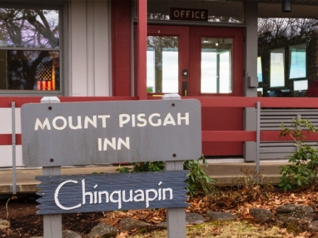 We looked in all directions and were treated to panoramic views of the Blue Ridge Mountains and the Biltmore Estate as we drove up and down the mountain. But the best view was on top at the Pisgah Inn where we ordered a North Carolina country breakfast to fortify us for touring Biltmore and the Asheville area. Before we left, we posed for pictures from the Inn's balcony: