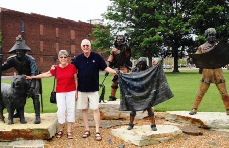 Then we wandered down by the riverfront to see where the Tennessee flows into the Ohio. A wall of murals lined the riverfront showing scenes from the Revolutionary War, the Lewis and Clark Expedition, and the Civil War. We could have spent another day touring the town and learning more history, but we had a motel reservation in Little Rock later that evening. We joined the Lewis and Clark group, took pictures of some of the murals, then got back of the road to Arkansas. By nightfall we had crossed the Mississippi and were in Little Rock.