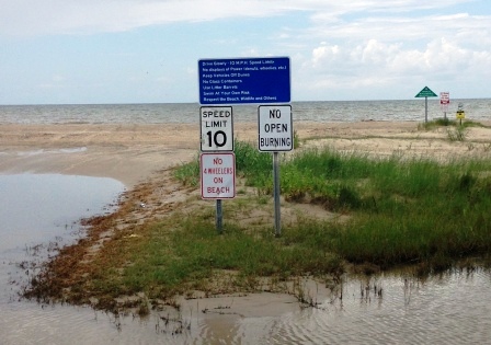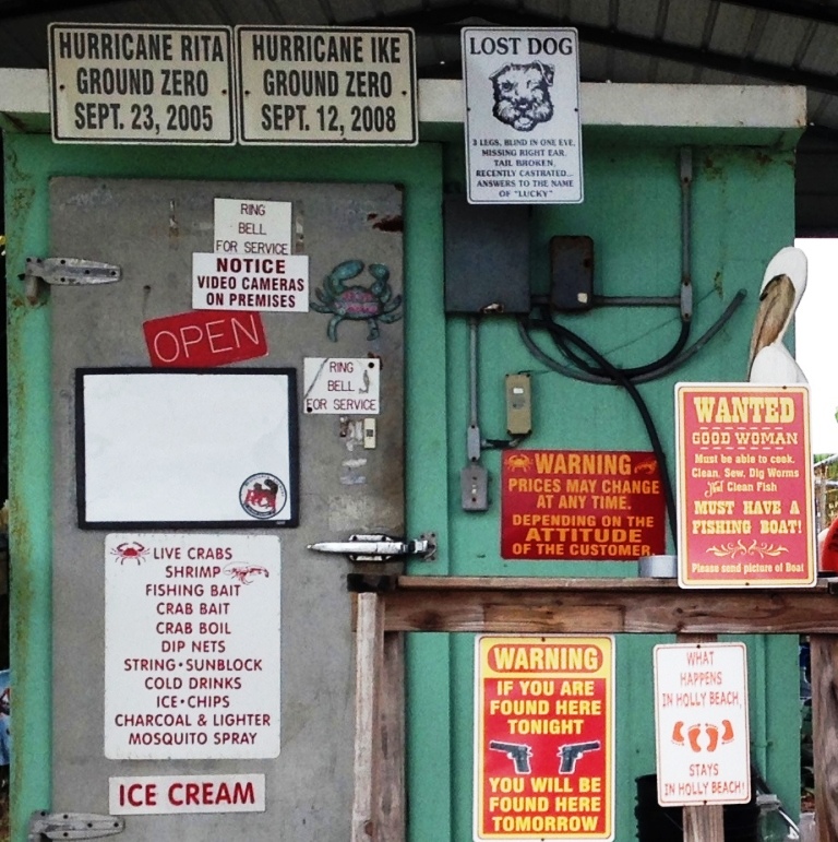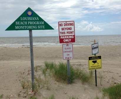 The only bathroom was a lonely porta-potty a ways off the beach. The water was brown from the rivers emptying into the Gulf. The signs outnumbered the few beachgoers who dared wade in the muddy breakers.